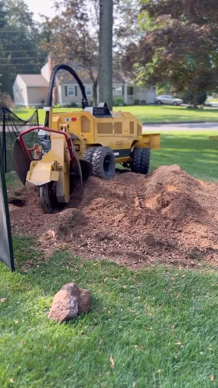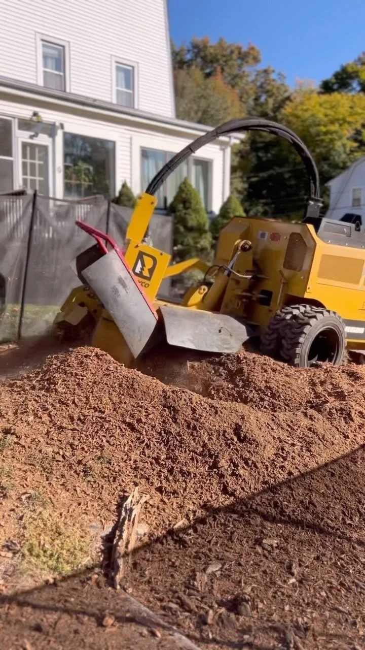 The pride of our fleet is a 2022 Rayco RG80 which is one of the largest units available. With an 85hp engine it out grinds other machines and gets the job done quicker. This 4x4 wheeled machine is capable of navigating any terrain, yet designed to have minimal impact on your lawn.